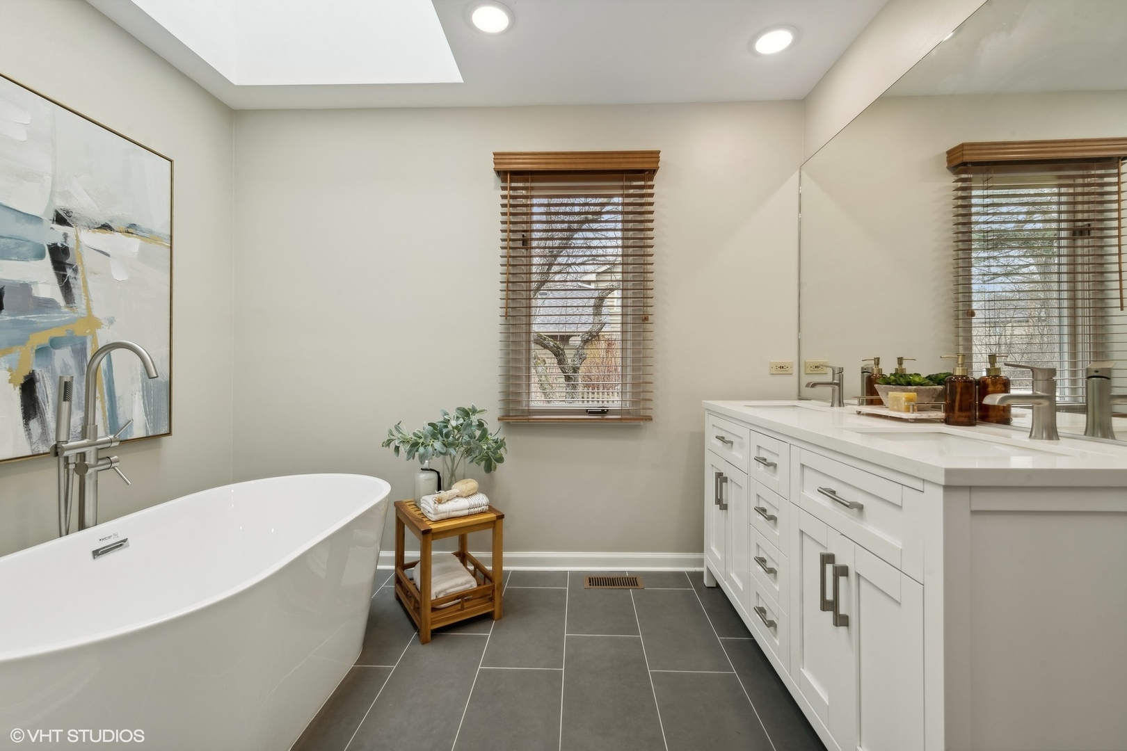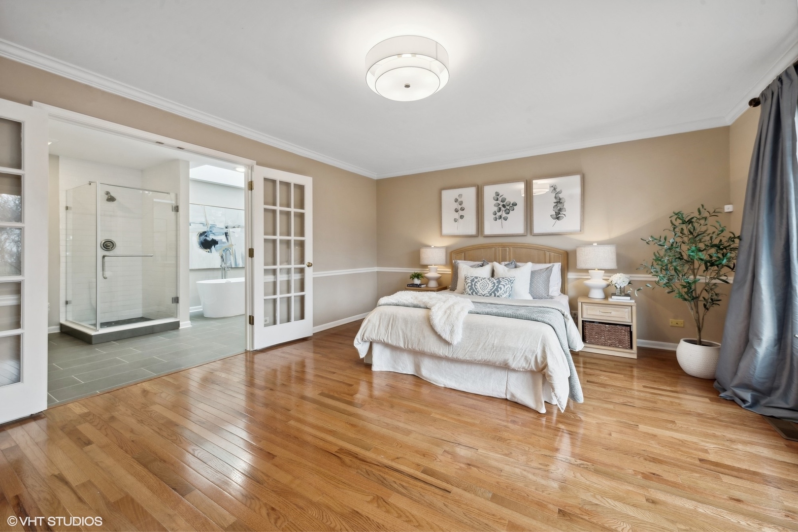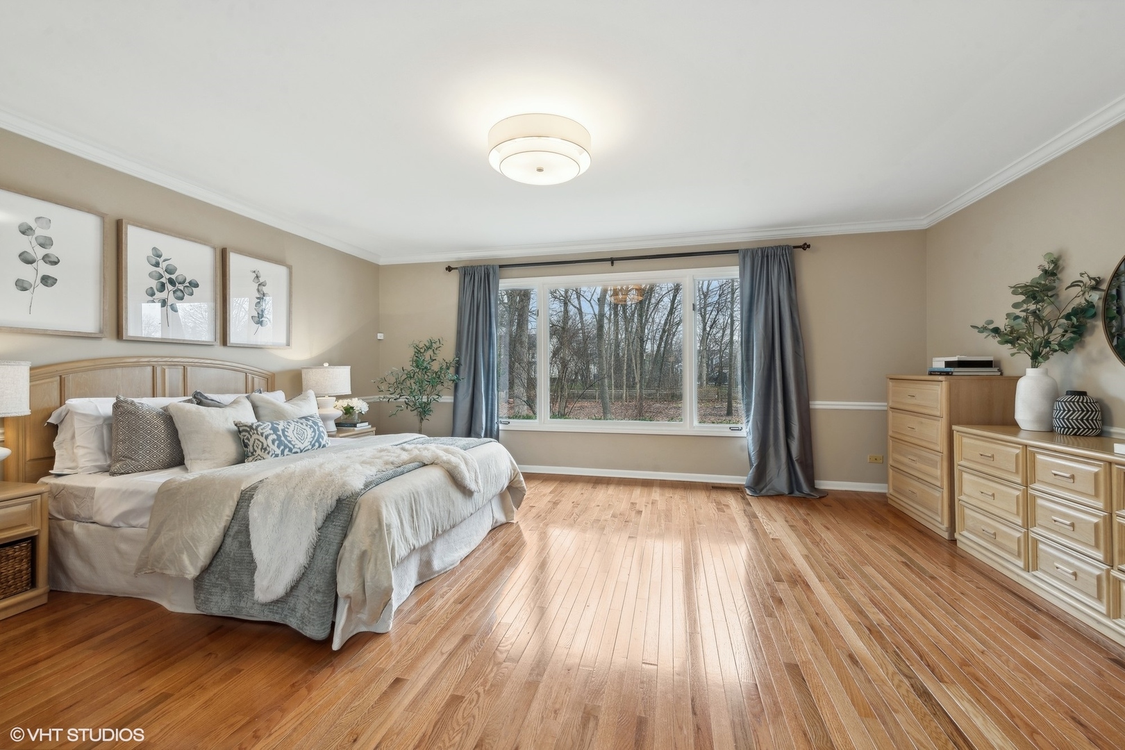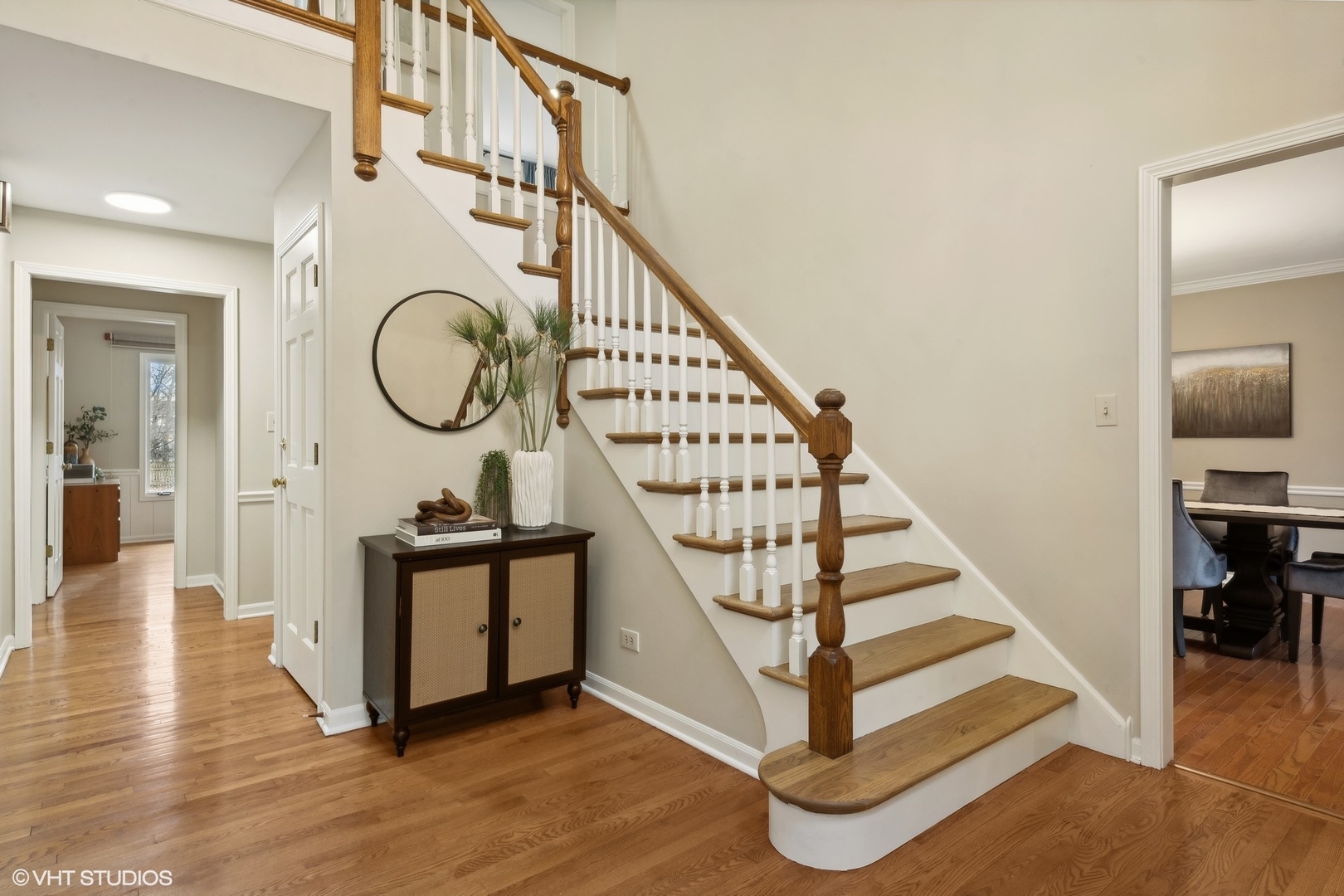 Welcome to this amazing Arthur Greene built home, a timeless sanctuary spanning over 3400+ square feet of refined elegance. Throughout features include hardwood floors on the main level, brand new carpet on the upper level, spacious rooms and large, beautiful windows. Freshly painted, every corner of this home exudes sophistication and meticulous attention to detail. Step into the expansive 2-story foyer, where the thoughtful layout welcomes you with warmth and a seamless flow, perfect for both daily living and entertaining. The heart of this home lies within the renovated gourmet eat-in kitchen, featuring quartz countertops, a sizable central island, breakfast bar, and new stainless steel appliances. This culinary haven seamlessly transitions into the family room, where a cozy floor-to-ceiling brick fireplace and a convenient wet bar and builtins create an inviting atmosphere for gatherings and relaxation. Retreat to the spacious first floor primary suite, where tranquility awaits in the fully renovated spa-like bath boasting a double sink quartz top vanity, beautiful soaking tub and a walk-in closet. An adjacent flexible room offers versatility as a nursery, bedroom, or office to suit your lifestyle needs. Upstairs, three additional bedrooms impress with ample space and expansive closets, ensuring comfort and convenience for all. Step outside to the sprawling, private backyard oasis featuring mature trees, a fenced yard, and an oversized deck perfect for alfresco dining and embracing nature's beauty. The huge partially finished basement offers an opportunity to customize and create your own design, adding up to an additional 1300 sq ft of living space. Nestled on a serene 1/2 plus acre lot, this residence epitomizes suburban living at its finest. Enjoy the convenience of easy access to shopping, dining, entertainment, and transportation options, all within the 103 and 125 top-rated school districts. Don't miss out on the opportunity to make this your own.
