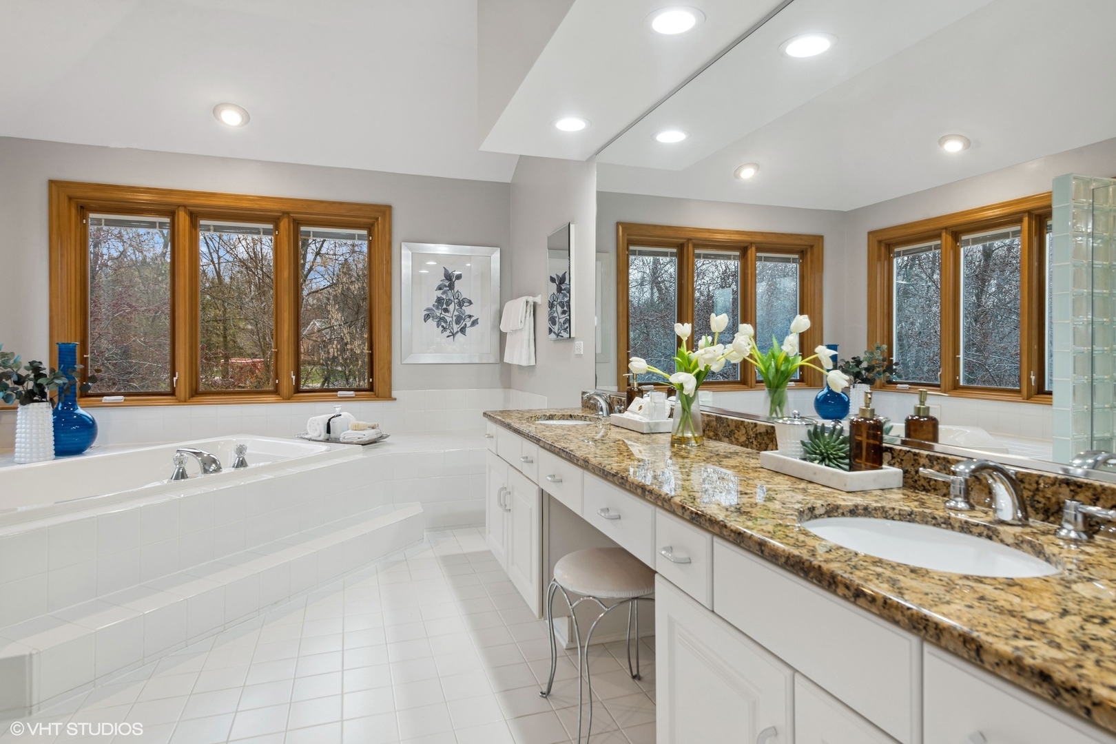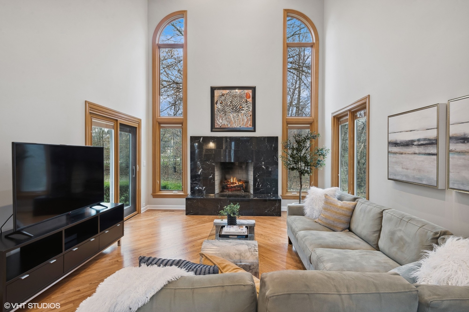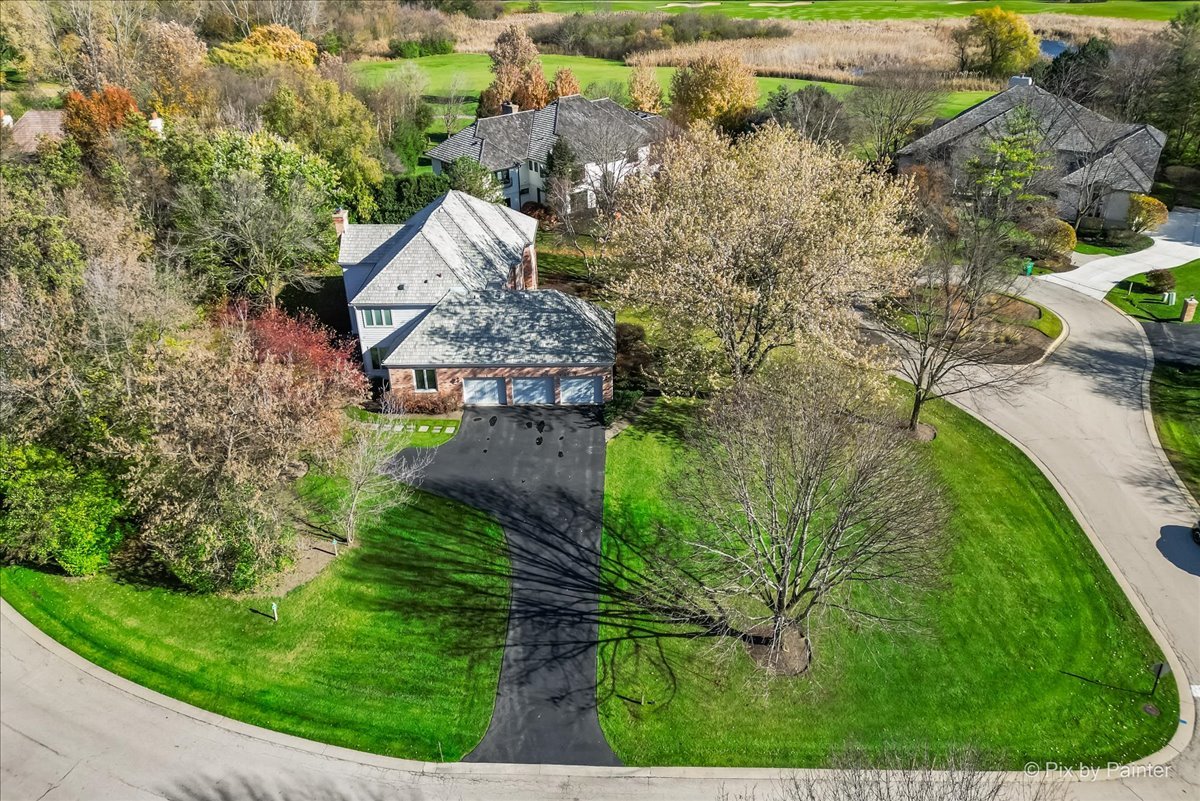 Welcome to this immaculate 5-bedroom, 4-bathroom home. Nestled on a prime cul-de-sac lot, this property presents a rare find at an unbeatable price point. Step inside to discover a seamlessly designed open floor plan adorned with beautiful hardwood flooring, complemented by generously sized rooms boasting large windows that flood the space with natural light. The two-story family room is a focal point, featuring a striking granite fireplace, creating an inviting atmosphere for both relaxation and entertainment. An expansive private office, with built-ins and French door entries, provides an ideal space for work or study. Convenience meets flexibility with a first-floor bedroom, complete with an adjacent full bath. Ascend to the second floor to experience the primary suite-a true oasis boasting a cathedral ceiling, a spacious walk-in closet, and a luxurious bathroom. Three additional well-appointed bedrooms and a full bath complete the second-floor layout. The spacious finished lower level elevates this home to another level, offering a sprawling recreation room, a convenient wet bar area, and an additional full bath. 3 car garage!! Generator Backup!! The residence is proudly situated within the nationally ranked Stevenson High School District and benefits from award-winning elementary and middle schools. Set within the prestigious Royal Melbourne Subdivision-a gated community offering 24/7 security and an air of prestige-this property is an extraordinary opportunity that should not be missed. (Windows 2008, AC units 2022, furnaces 2012, Roof is original has been inspected, maintained, treated and professionally preserved regularly every 3-5 years, 2022 last treated.) Enter subdivision thru Front Gate only from Rt. 83.
