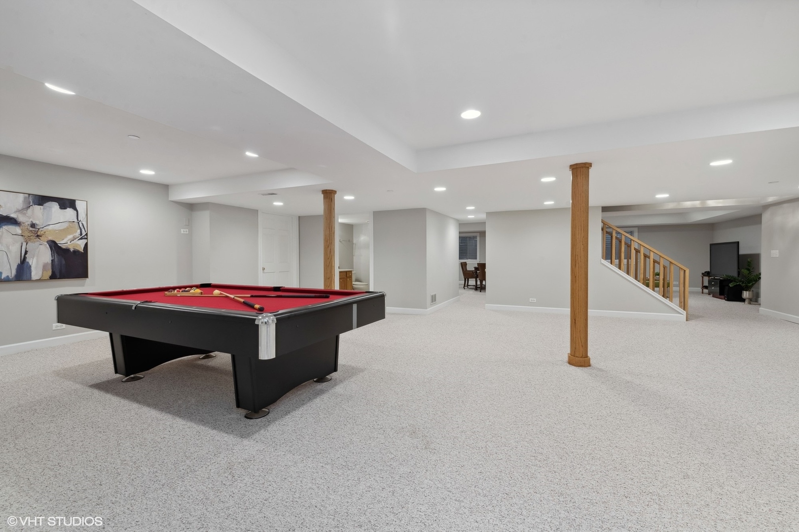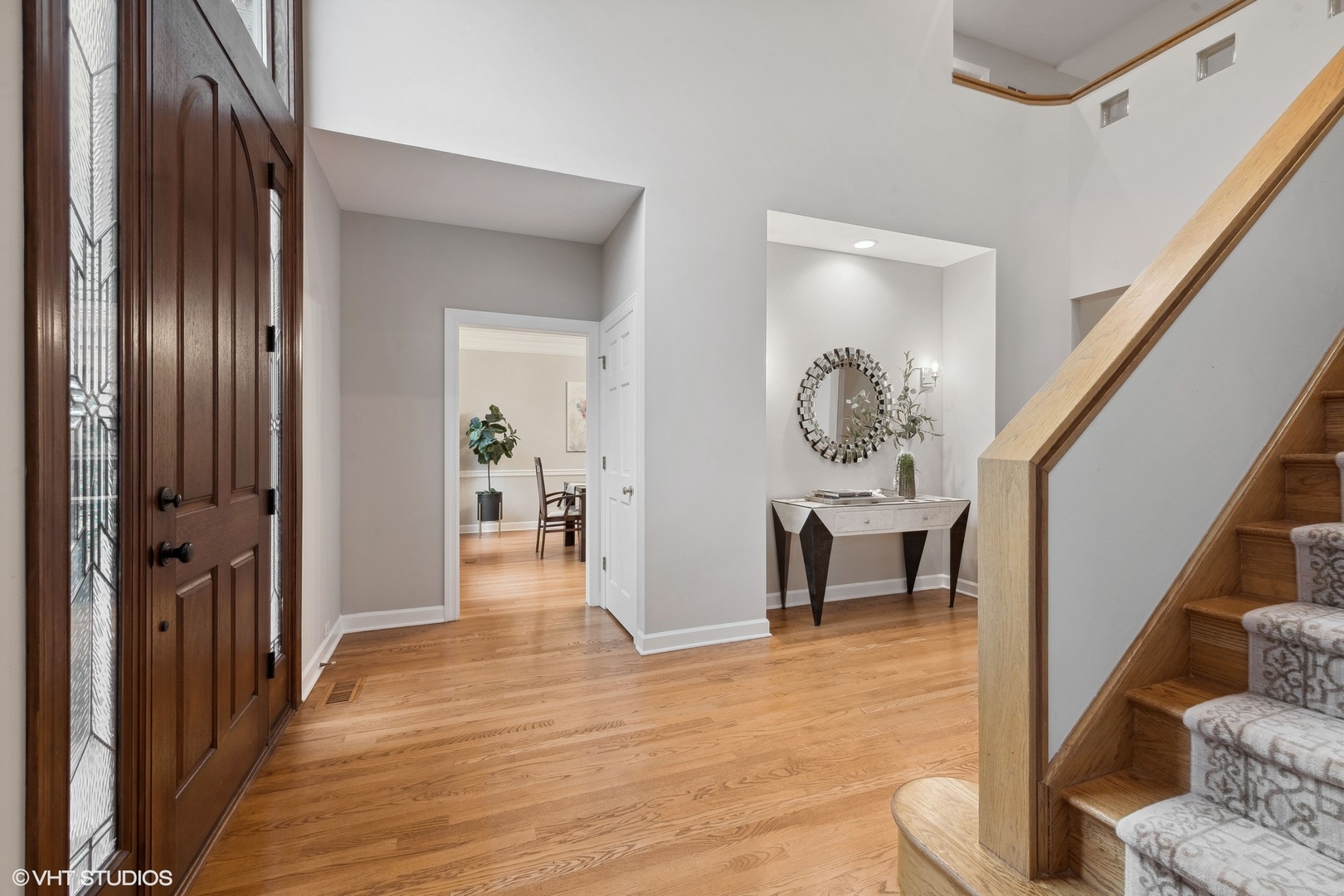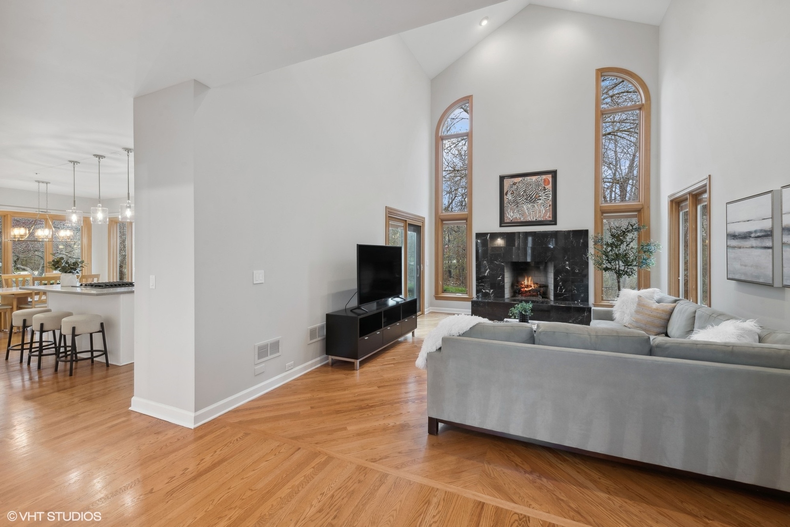 Welcome to this immaculate 5-bedroom, 4-bathroom home. Nestled on a prime cul-de-sac lot, this property presents a rare find at an unbeatable price point. Step inside to discover a seamlessly designed open floor plan adorned with beautiful hardwood flooring, complemented by generously sized rooms boasting large windows that flood the space with natural light. The two-story family room is a focal point, featuring a striking granite fireplace, creating an inviting atmosphere for both relaxation and entertainment. An expansive private office, with built-ins and French door entries, provides an ideal space for work or study. Convenience meets flexibility with a first-floor bedroom, complete with an adjacent full bath. Ascend to the second floor to experience the primary suite-a true oasis boasting a cathedral ceiling, a spacious walk-in closet, and a luxurious bathroom. Three additional well-appointed bedrooms and a full bath complete the second-floor layout. The spacious finished lower level elevates this home to another level, offering a sprawling recreation room, a convenient wet bar area, and an additional full bath. 3 car garage!! Generator Backup!! The residence is proudly situated within the nationally ranked Stevenson High School District and benefits from award-winning elementary and middle schools. Set within the prestigious Royal Melbourne Subdivision-a gated community offering 24/7 security and an air of prestige-this property is an extraordinary opportunity that should not be missed. (Windows 2008, AC units 2022, furnaces 2012, Roof is original has been inspected, maintained, treated and professionally preserved regularly every 3-5 years, 2022 last treated.) Enter subdivision thru Front Gate only from Rt. 83.